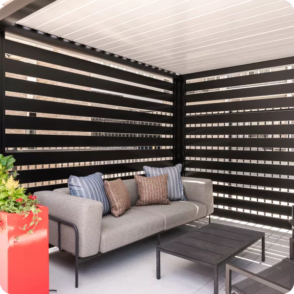 A classic with a contemporary twist. The R-Breeze™ offers a timeless look with partial shade. Its fixed louvers provide a sleek, streamlined appearance.