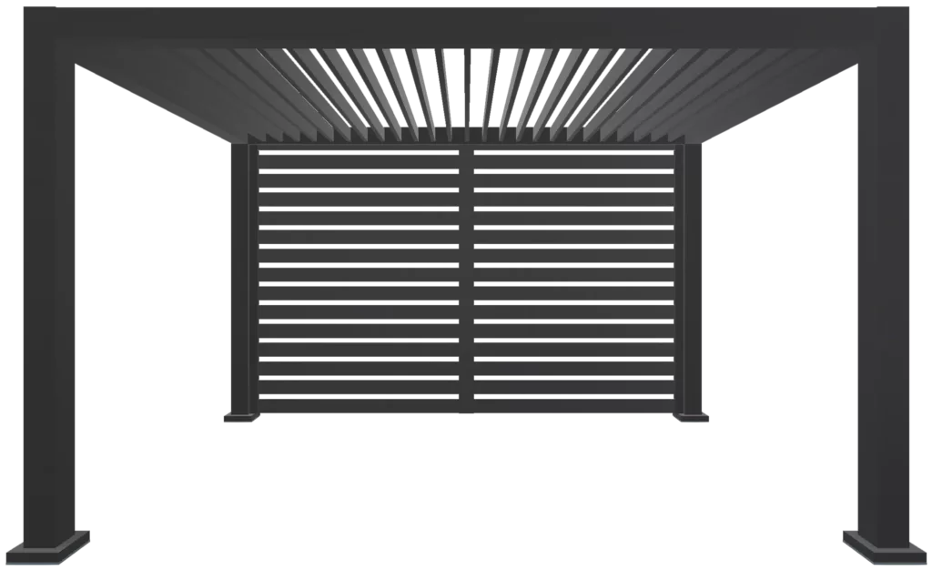 Transform your backyard or commercial area into a stylish exterior with the R-BREEZE™ pergola with fixed louvers. The R-BREEZE™ modern architectural element combines elegance with durability and offers an ideal outdoor living solution.