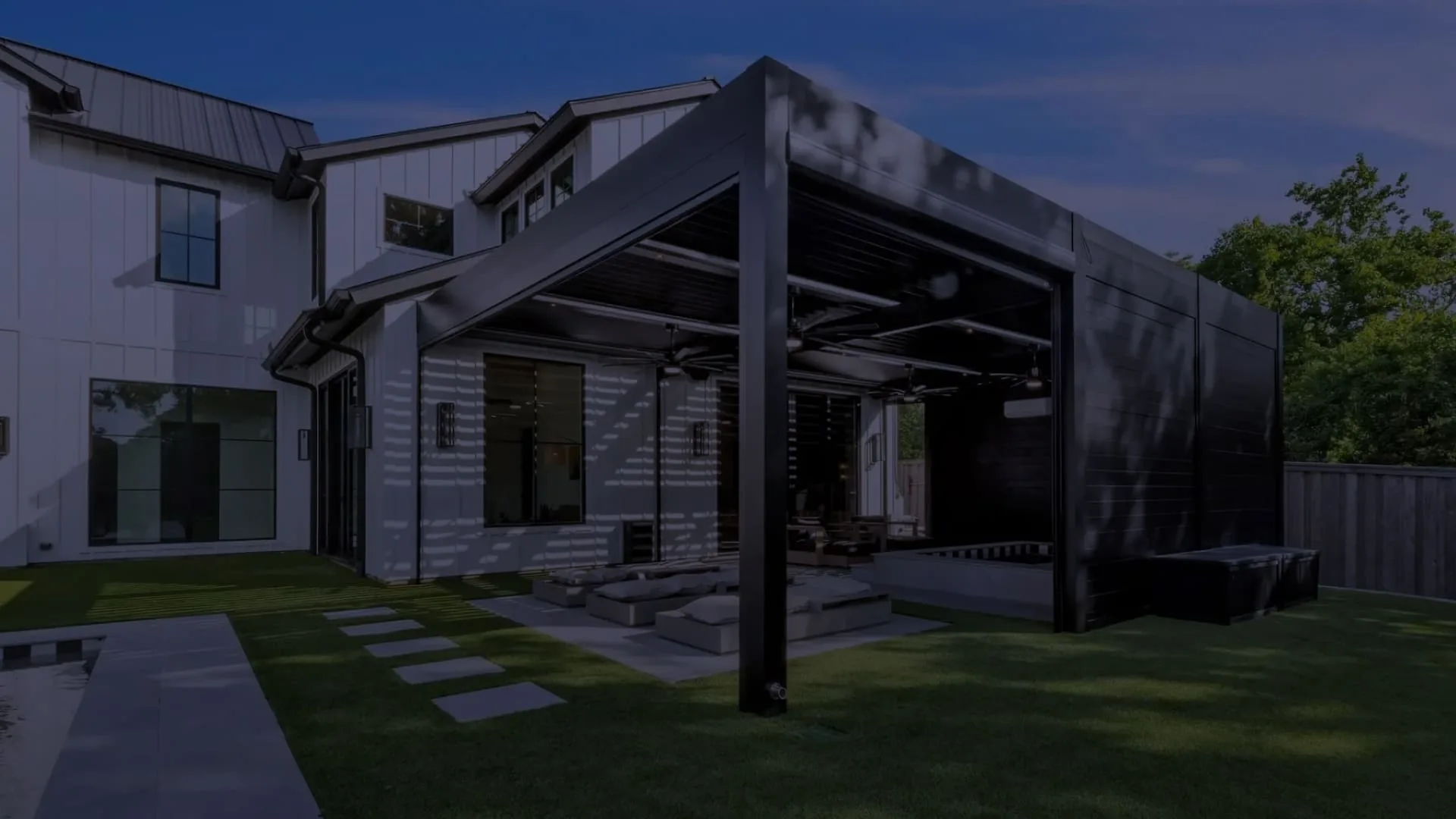 Create a shaded outdoor living area with motorized louvers that adjust throughout the day, helping keep your backyard comfortable in changing weather.